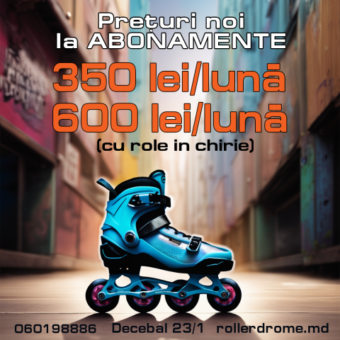 --Безлимитный Абонемент на 1 месяц без проката роликовых коньков будет стоить - 350 лей.